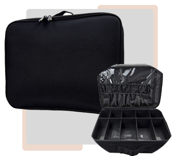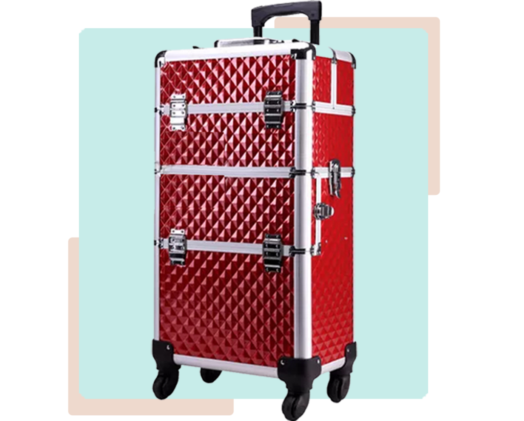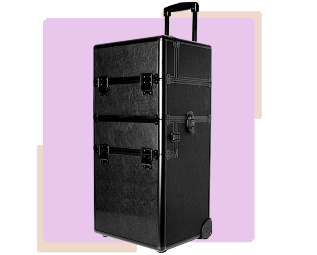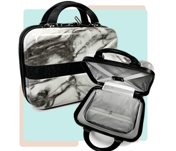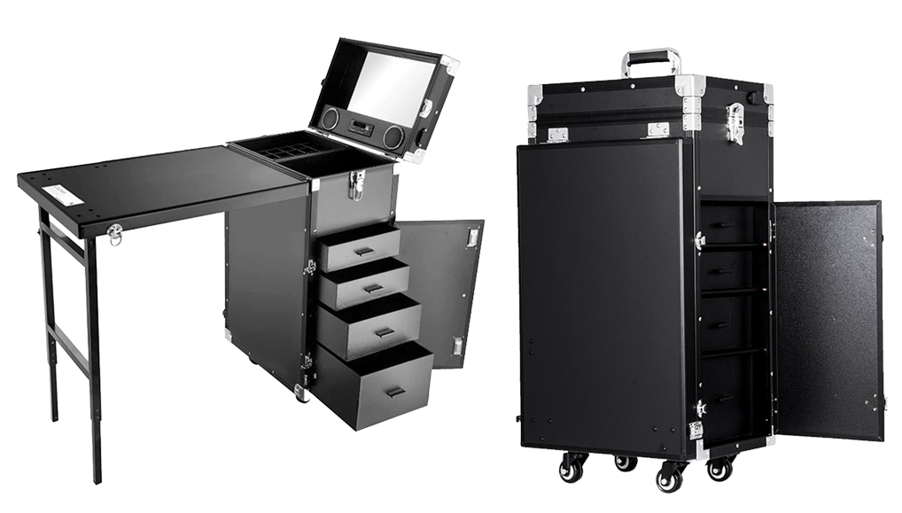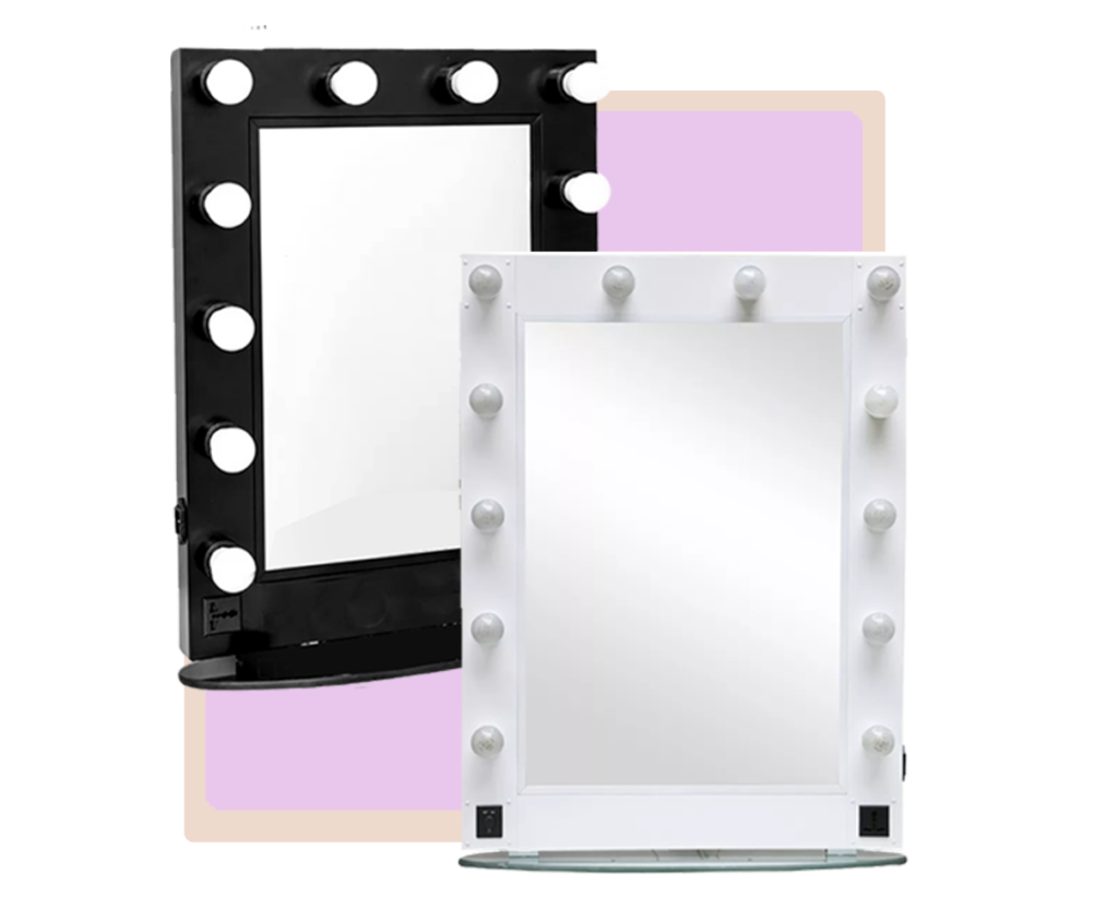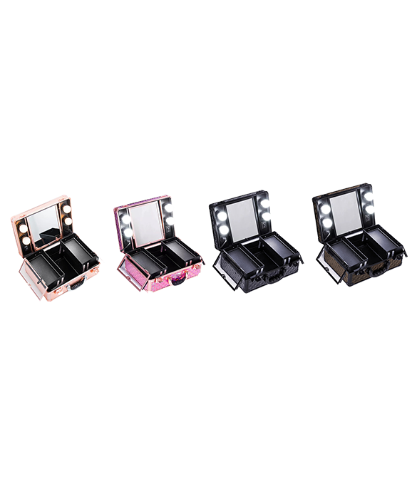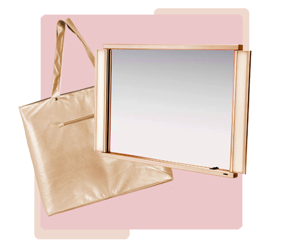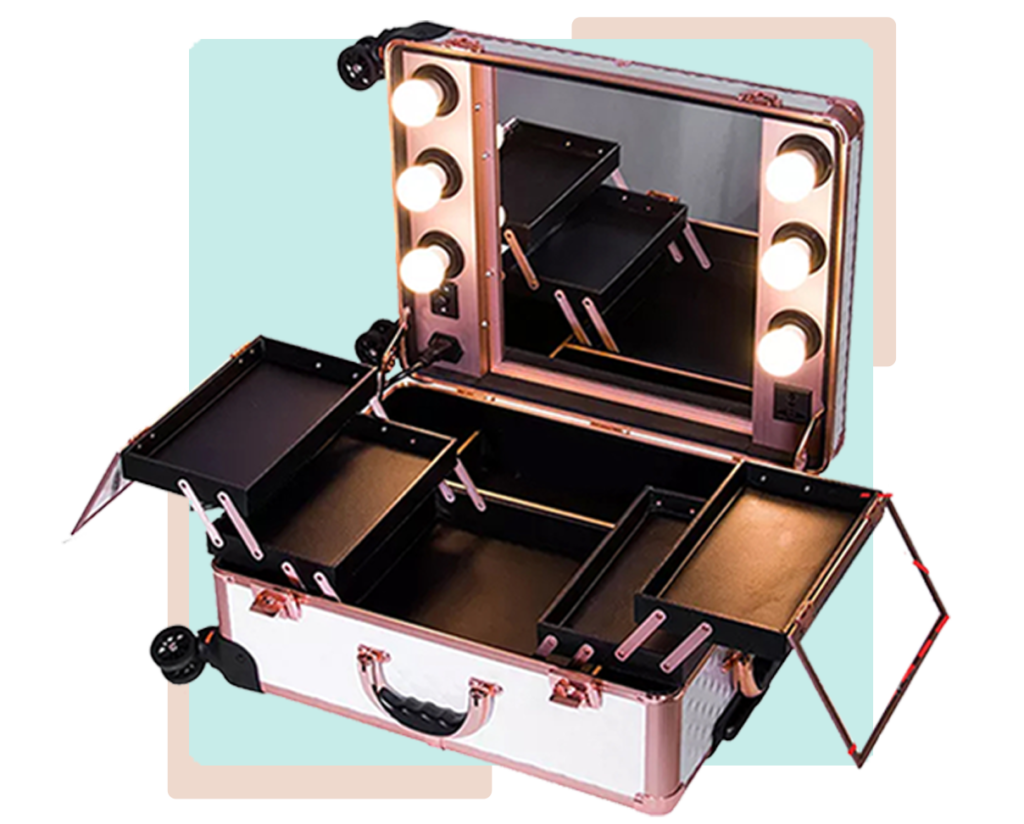 Grande compartimento de armazenamento na parte inferior + um espelho removível na tampa.